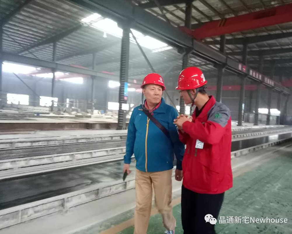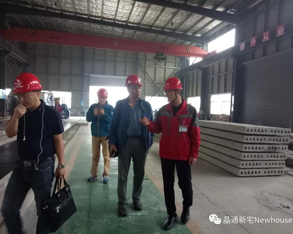 在姜?jiǎng)P寧總經(jīng)理的陪同下,常秘書長(zhǎng)和企業(yè)家們走訪了晶通的三層夾芯自保溫墻板和預(yù)應(yīng)力混凝土空心樓板生產(chǎn)車間,仔細(xì)了解墻板的構(gòu)造及生產(chǎn)安裝工藝,并深入交流了兩家企業(yè)的合作模式。