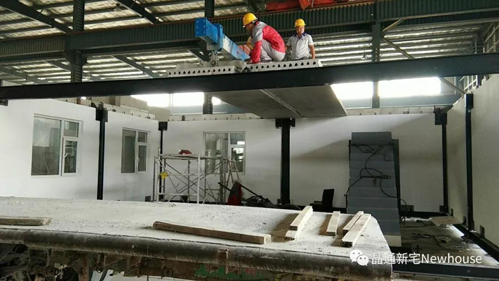 此次參展的建筑面積為59.85㎡,建筑部品包括:鋼結(jié)構(gòu)框架、6塊預(yù)制外掛板、3塊包柱板、2塊預(yù)應(yīng)力混凝土空心樓板、1部樓梯,廠內(nèi)預(yù)裝用時6個小時,試裝成功后于今晚啟程運輸至北京住博會現(xiàn)場!