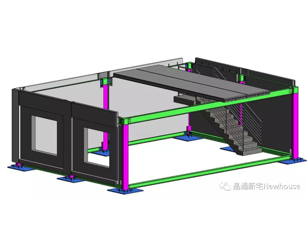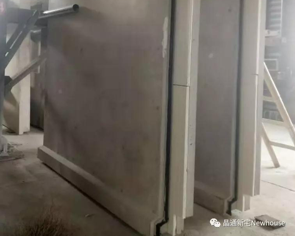 晶通今年參展的建筑體系為裝配式鋼結(jié)構(gòu)梁墻一體的結(jié)構(gòu)體系,主體結(jié)構(gòu)為鋼結(jié)構(gòu)框架,墻板采用的是梁墻一體保溫外墻板,墻板厚度為220mm,該墻板最大的特點就是將鋼梁與混凝土墻板預(yù)制成一個整體,同時鋼柱也會采用異形墻板完全隱藏在墻板內(nèi),解決了傳統(tǒng)鋼結(jié)構(gòu)外掛墻板體系中鋼梁鋼柱外露在室內(nèi)的問題,從而有效的提高了室內(nèi)整體美觀性,這樣既減少了二次裝修的成本,也增加了室內(nèi)有效使用面積。墻板內(nèi)置擠塑聚苯板保溫層,有效的提高了保溫層的使用壽命,外墻面的一些凹凸構(gòu)造也使得墻面本身更具有美觀性和裝飾性。